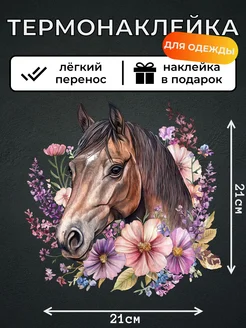 Термонаклейка на одежду конь в цветах