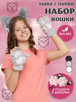 Набор перчатки лапки и ободок с ушками кошки