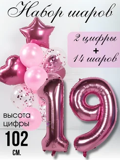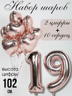 Шар цифра 19 и шарики сердечки Набор с днем рождения