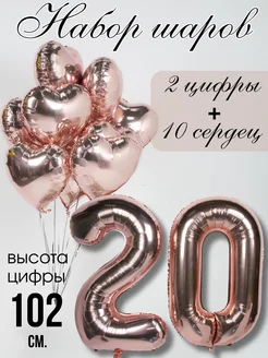 Шар цифра 20 и шарики сердечки Набор с днем рождения