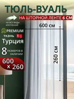 Тюль вуаль в спальню и гостиную длинная 600*250