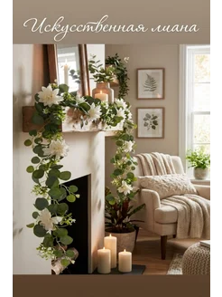 Лиана искусственная для декора, с цветами, эвкалипт 1 шт