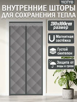Теплые дверные занавески на липучках и магнитах 100X210cm