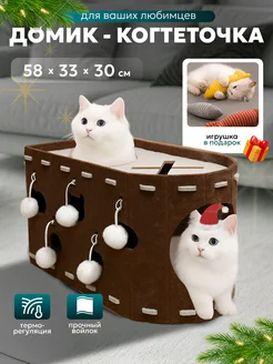 Домик-лежанка для кошек с когтеточкой и игрушкой