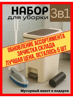 Мусорное ведро с ершиком и щеткой, комплект 3 в 1