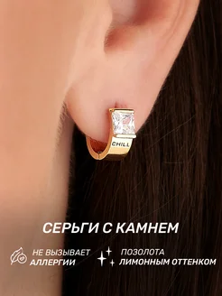 Серьги пусеты джекеты бижутерия с камнем гвоздики