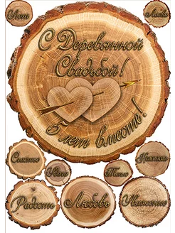 Сахарная картинка (А4) для торта Деревянная свадьба №1