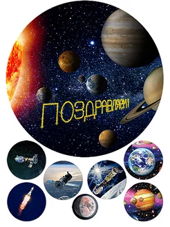 Сахарная картинка (А4) для торта и капкейков КОСМОС №3