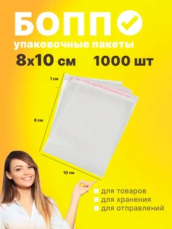 Упаковочные пакеты БОПП с клеевым клапаном 8х10 см 1000 шт