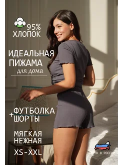 Мягкая пижама с шортами и футболкой рубчик