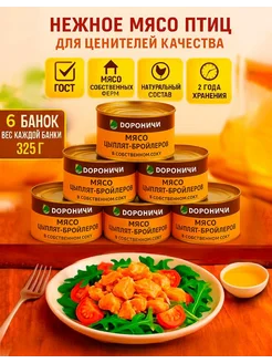 Мясо цыпленка тушеное в собственном соку 6 шт. по 325 гр