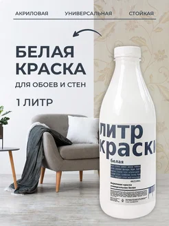 Белая, краска акриловая матовая, бутылка 1 л