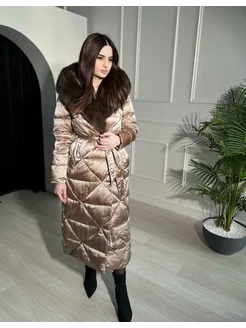Куртка зимняя длинная с белым мехом