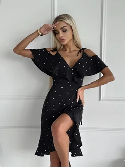 Платье летнее в горошек на запах женское