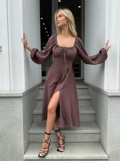 Платье летнее с разрезом из муслина