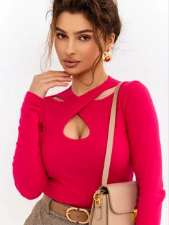 С вырезом лонгслив в рубчик