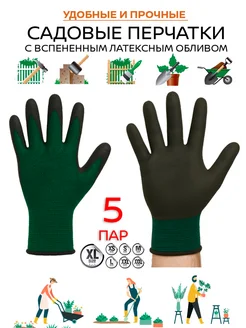 Перчатки садовые с покрытием 5 пар размер S-M-L