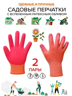 Перчатки садовые с покрытием 2 пары размер S-M-L