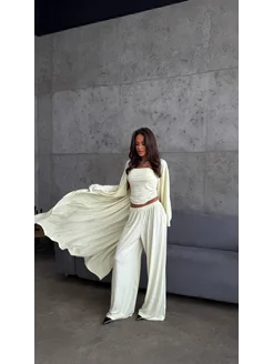 Костюм тройка летний с брюками палаццо топом и кимоно