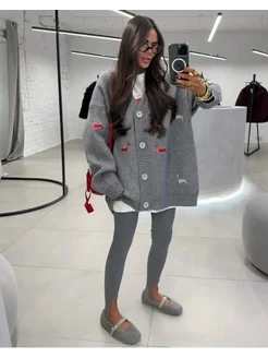 Кардиган вязанный на пуговицах оверсайз удлиненный