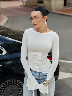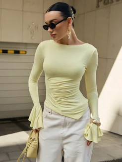 Лонгслив с рукавами клеш асимметрией и драпировкой