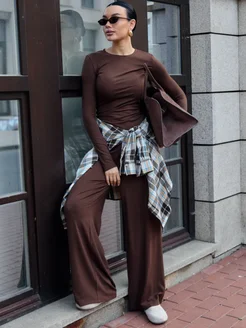 Костюм пижама трикотажный лонгсливом свободные брюки