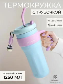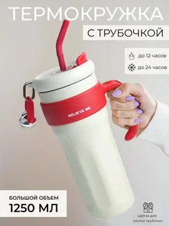 Термокружка для кофе и чая с трубочкой большая автомобильная