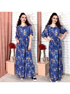 Платье штапельное на кулиске крестьянка длинное летнее