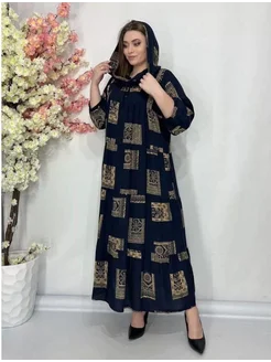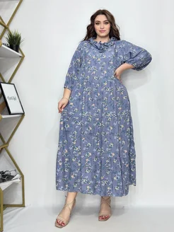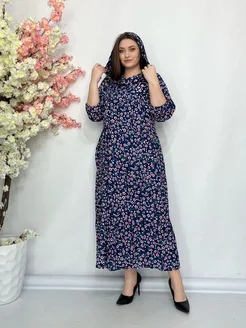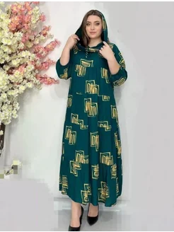 Платье длинное повседневное оверсайз с капюшоном из штапеля