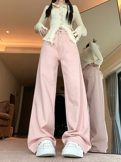 D2029 Розовые джинсы с высокой талией и широкими штанинами д