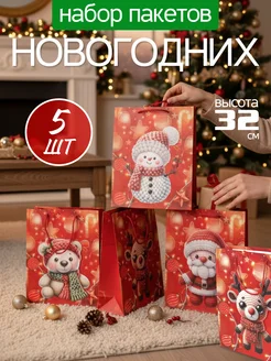 Подарочный пакет новогодний бумажный набор 5 штук 32см