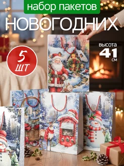 Подарочный пакет новогодний бумажный набор 5 штук 41см