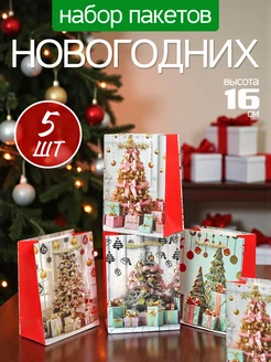 Подарочный пакет новогодний бумажный набор 5 штук 16см