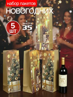 Подарочный пакет новогодний для вина 5 штук 12x35см