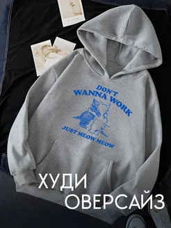 Худи оверсайз серое с начесом с котиками