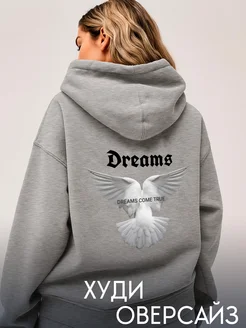 Худи серое оверсайз с начесом