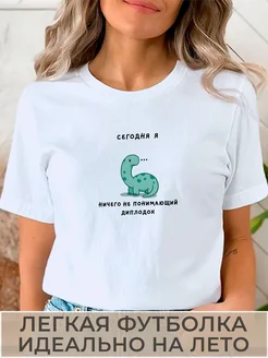 Футболка белая женская с динозавром Не понимающий Диплодок
