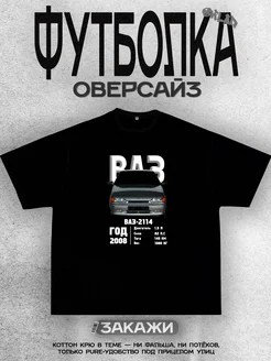 Футболка с принтом "ВАЗ 2114" оверсайз черная