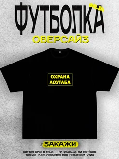 Футболка с принтом "Охрана лоутаба" оверсайз черная