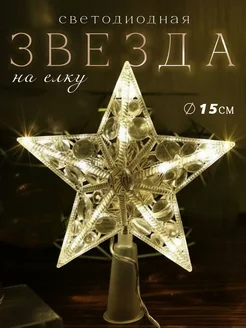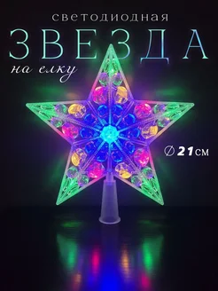 Звезда на елку верхушка большая светодиодная на батарейках
