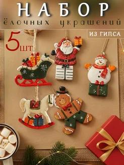Новогодние ёлочные украшения для дома из гипса набор 5 штук