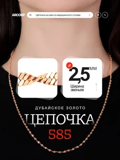 Цепочка на шею из медицинского сплава позолоченная