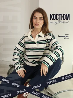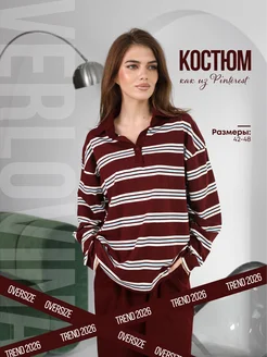 Костюм с брюками в полоску трикотажный повседневный зимний