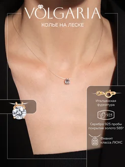 Колье на леске серебро с камнем
