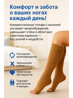 Компрессионные гольфы с молнией при варикозе