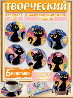 Картина по номерам Подставка Черный кот 6шт Космос Картины