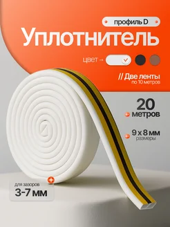 Уплотнитель для окон и дверей самоклеящийся D-профиль 20 м