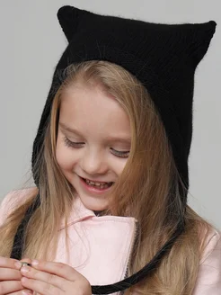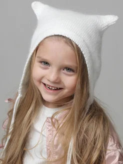 Шапка чепчик ангора для девочки с ушками