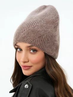 шапка бини женская вязаная из ангоры