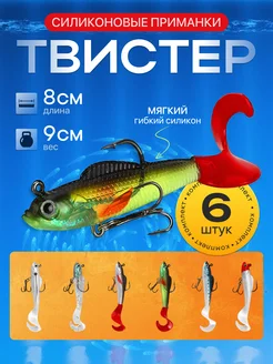 Воблеры для рыбалки, набор 6 штук твистер и виброхвост